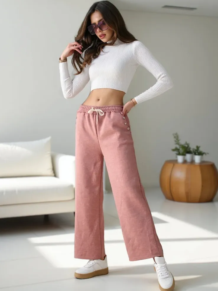 - Szerokie spodnie damskie dresowe to połączenie komfortu i stylu. Wykonane z lekkiego, oddychającego materiału, idealne na co dzień. Ich luźny krój zapewnia swobodę ruchów, a elastyczny pas gwarantuje wygodę.