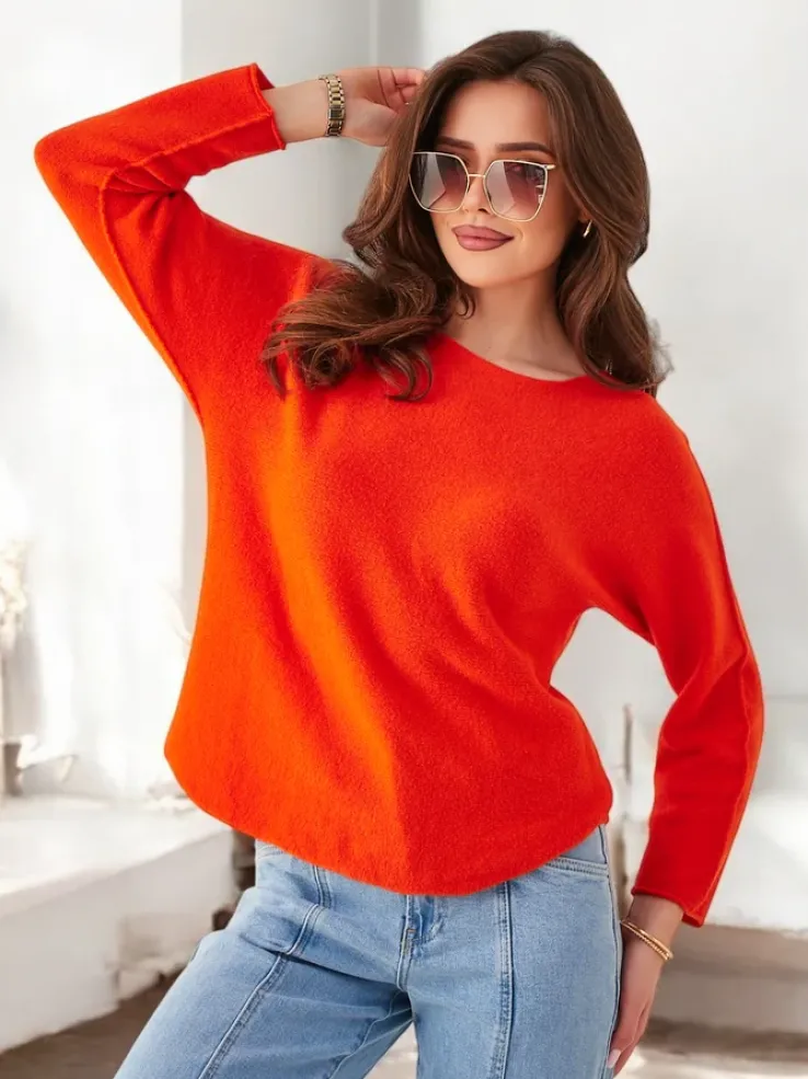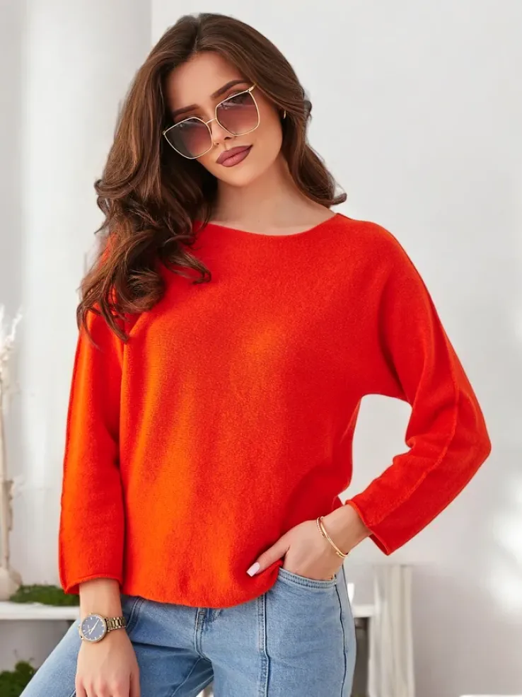 - Damski sweterek wykonany z lekkiej, wiskozowej tkaniny. Posiada długie rękawy i okrągły dekolt, zapewniając komfort i elegancję w codziennych stylizacjach. Dostępny w różnych kolorach, pozwala na łatwe dopasowanie do każdej garderoby!