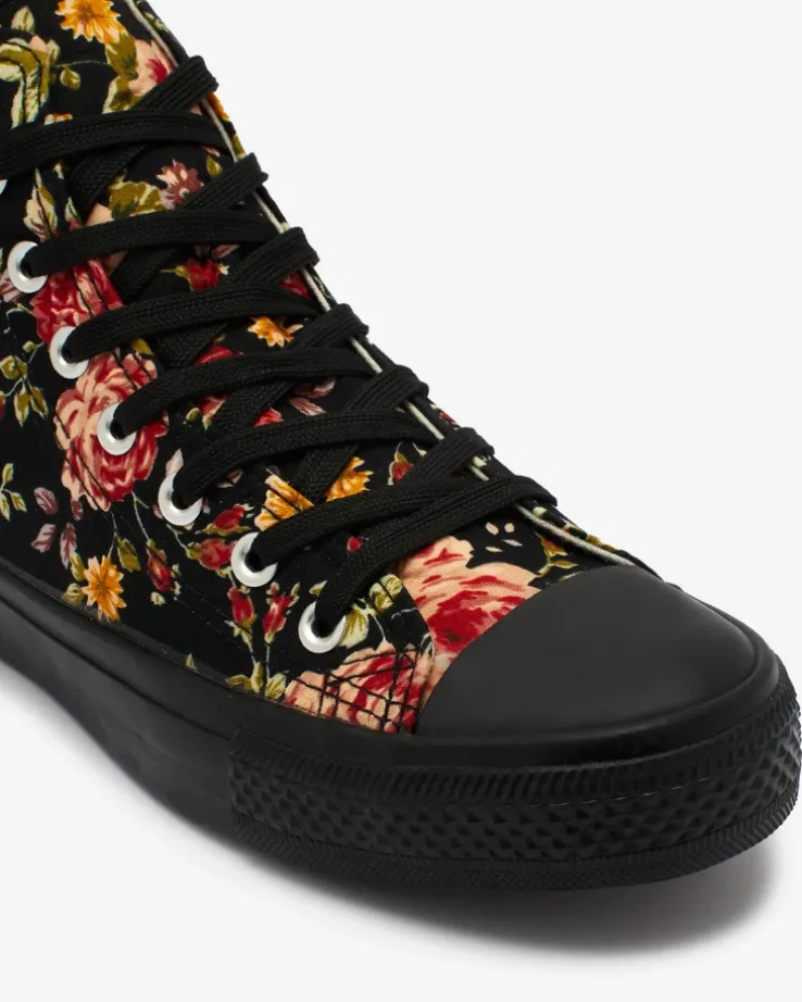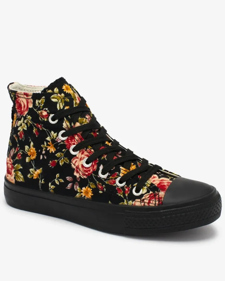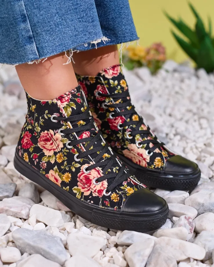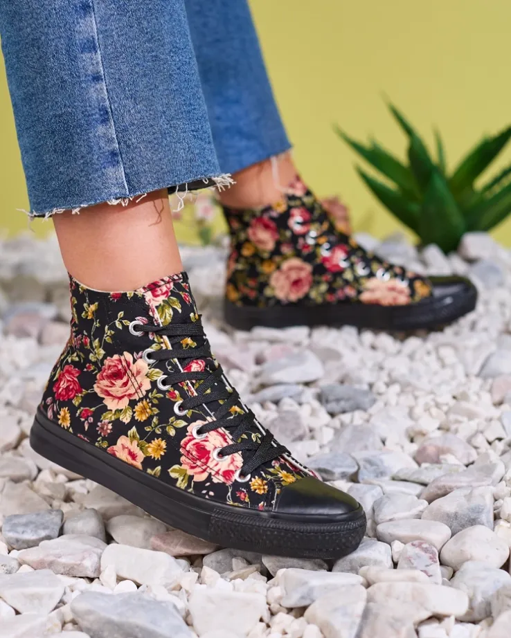 Royalfashion Wysokie czarne trampki damskie z printem w kwiaty Fahenna