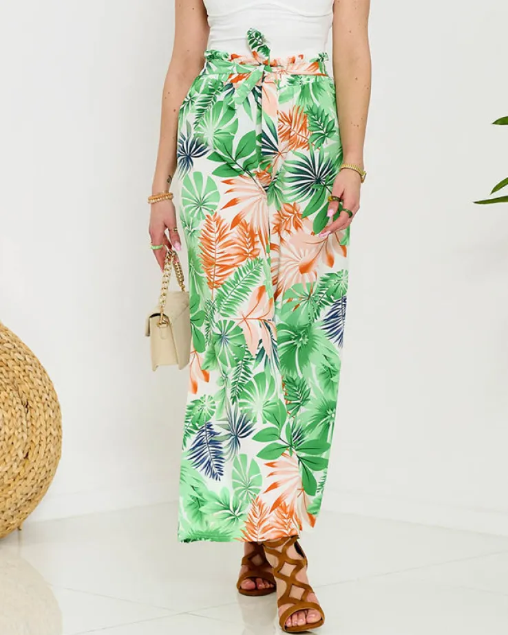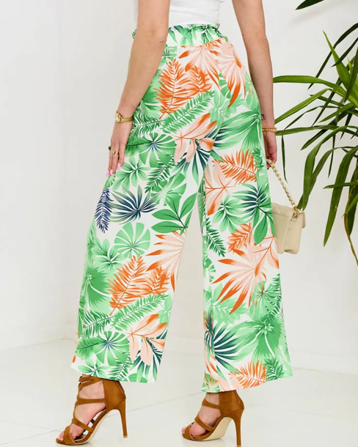 - Stylowe damskie szerokie spodnie typu palazzo, wykonane z lekkiej i zwiewnej tkaniny. Spodnie posiadają gumę w pasie oraz wiązanie podkreślające talię. Doskonałe na co dzień do tworzenia modnych outfitów! UWAGA: Dokładność pomiaru (+/-) 1 cm.