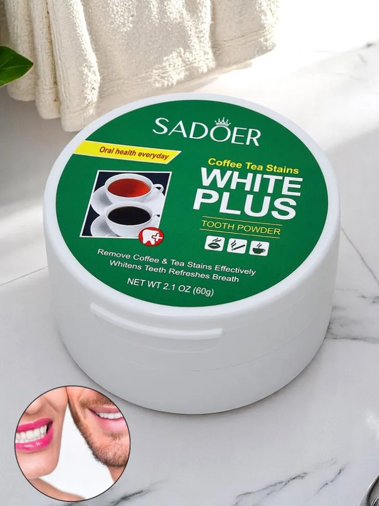 - Wybielający puder do zębów skutecznie usuwa przebarwienia po kawie i herbacie, przywracając zębom naturalną biel i świeżość bez uszkadzania szkliwa.