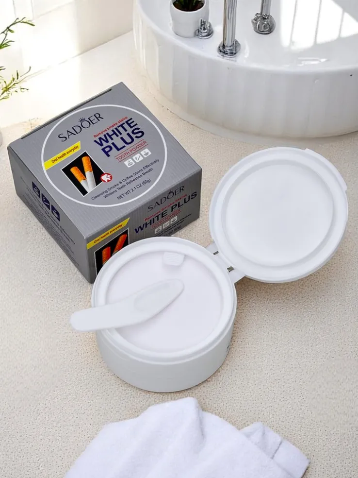 - Wybielający puder do zębów skutecznie usuwa przebarwienia po tytoniu, przywracając zębom naturalną biel i świeżość bez uszkadzania szkliwa.