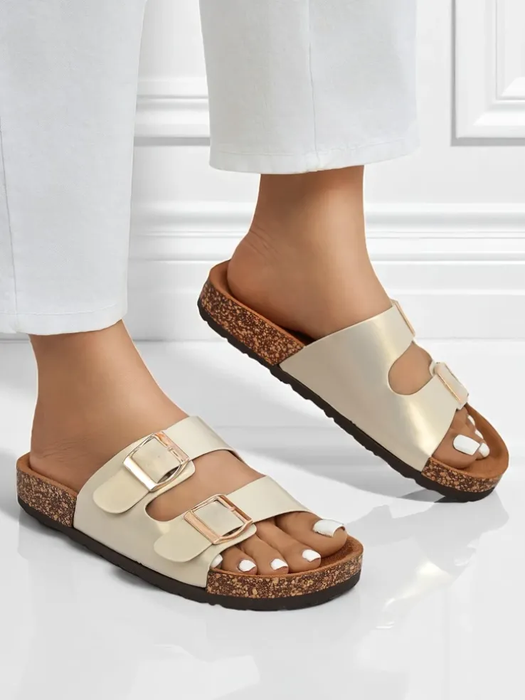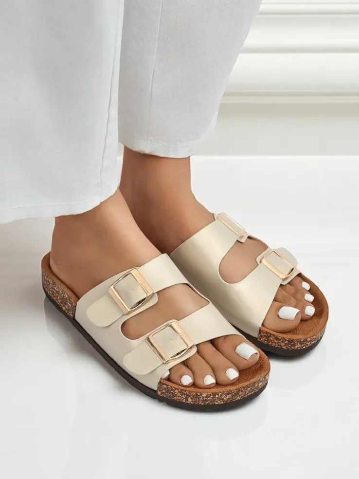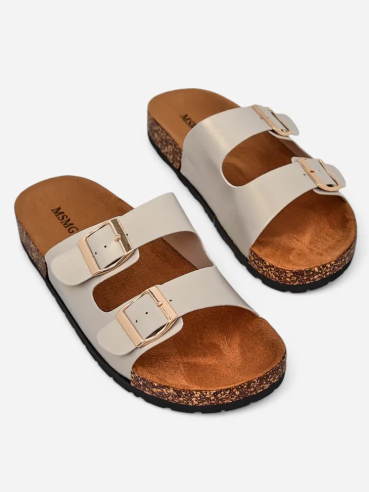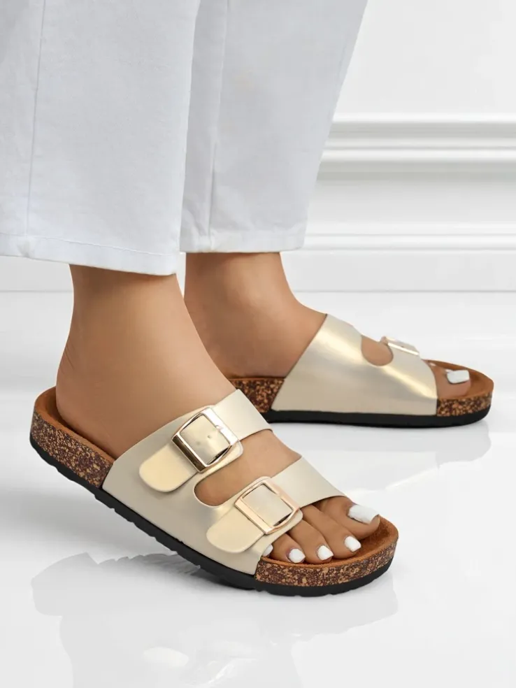 - Przepiękne klapki damskie wykonane ze skóry ekologicznej zdobione plastikowymi klamerkami. Gumowa podeszwa zdobiona materiałem a’la korek. Model w ciekawej kolorystyce. Idealnie uzupełnią letnie stylizacje!