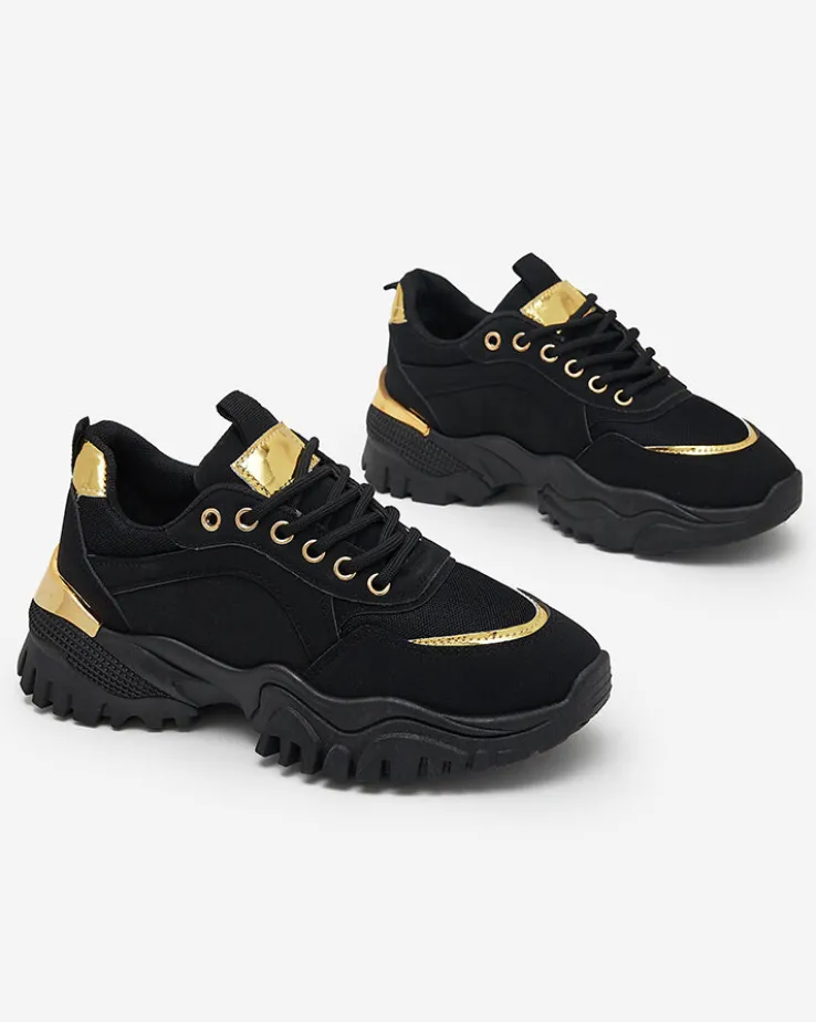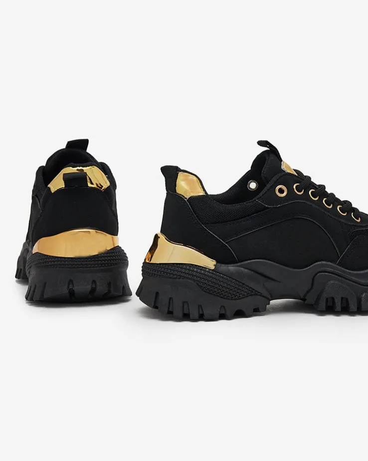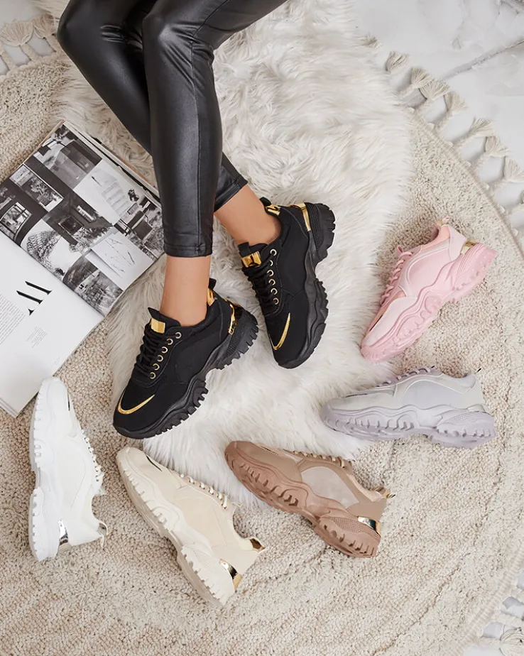 - Sportowe sneakersy damskie wykonane z eko-skóry. W środku tkaninowa wkładka. Model jest sznurowany, na masywnej podeszwie ze srebrną wstawką z tyłu. Będą świetną ozdobą do codziennych stylizacji.