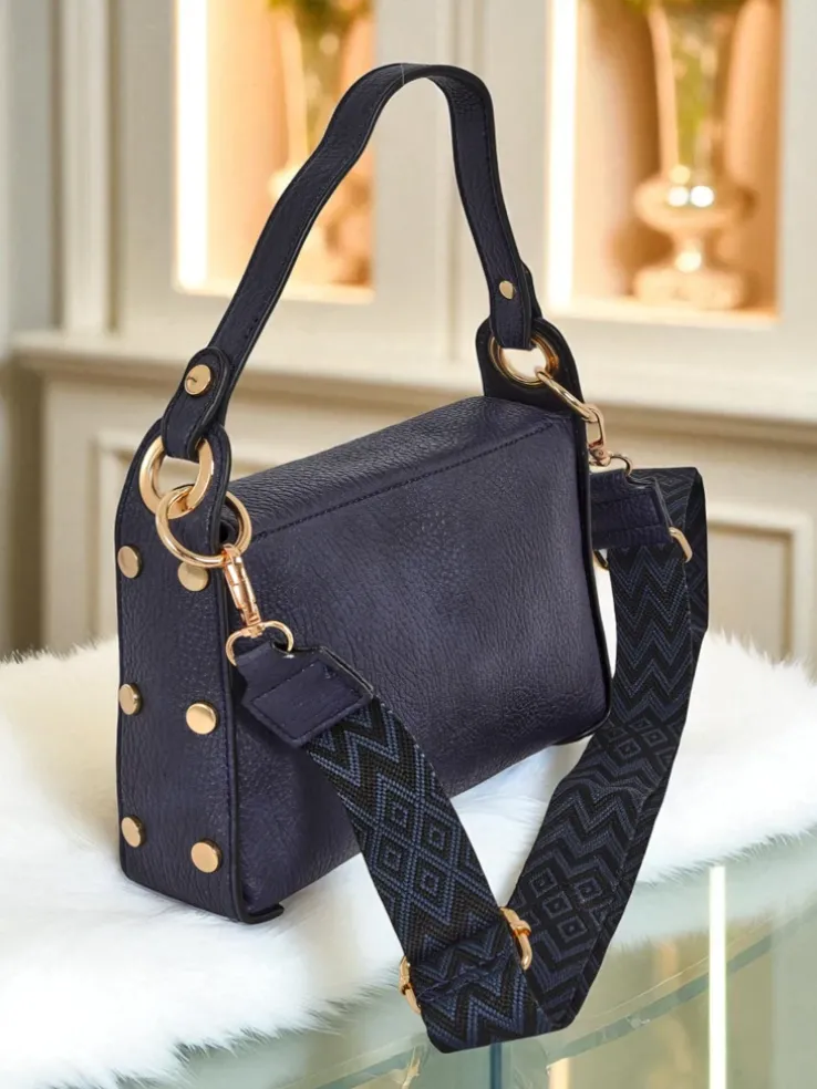 Torebka Damska Melia Cielo – Granatowa Skóra Ekologiczna z Motywem Pszczoły