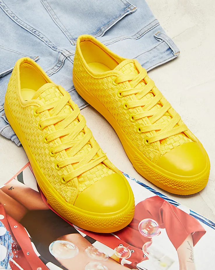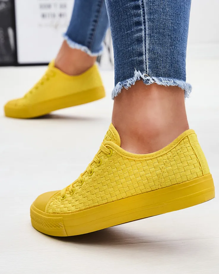 - Oryginalne damskie buty sportowe typu trampki na płaskiej podeszwie. Cholewka zdobiona tłoczeniem i wkładka wykonana jest z materiału tkaninowego. Super dodatek do Twoich casualowych outfitów!